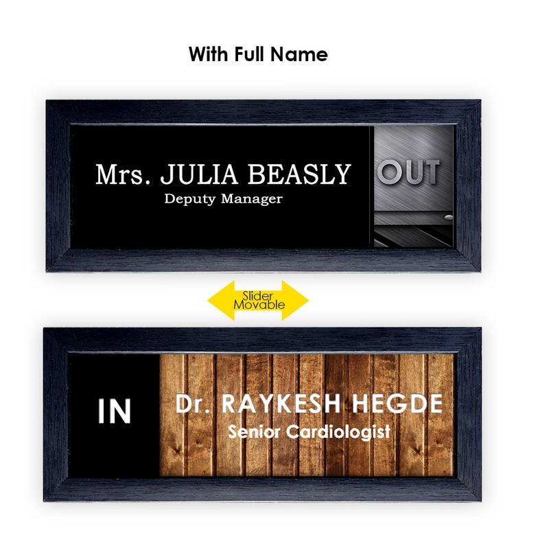 A name plate is often the most neglected in the aspects of looks, quality and style. For a name plate to fulfill its purpose should have three important features- visibility, catchy appearance and name coverage space. In order to cover all of these features in a name plate and fulfill the purpose of name plates. We have launched a series of name plates among which Noble In and Out Mount offers users more than just the name visibility. It has an option of slider that is movable using which you can let people know if you are available in the room or no. This is a very interesting characteristic which makes it unique. This time when you leave the room just move the slider!